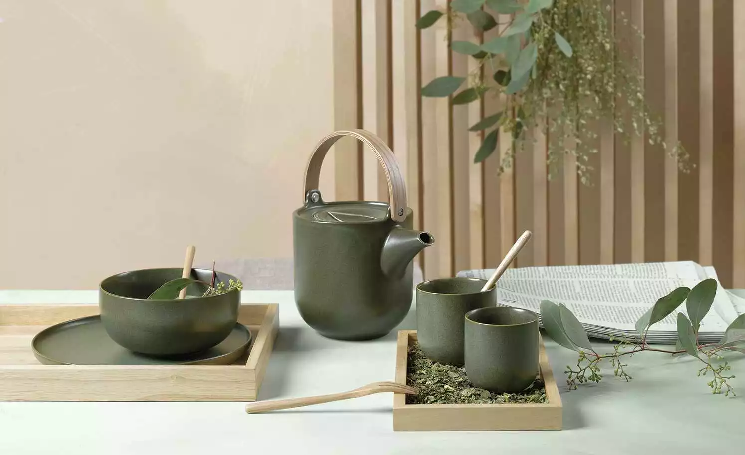 - Olivgrünes Porzellan mit Effektglasur
