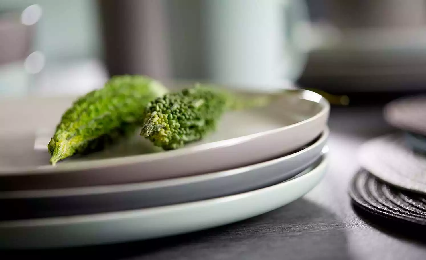 Innen- und Oberseiten der Geschirrteile sind mit einer Glanzglasur veredelt, Außen- und Unterseiten dagegen mit einer eher unüblichen Mattglasur.