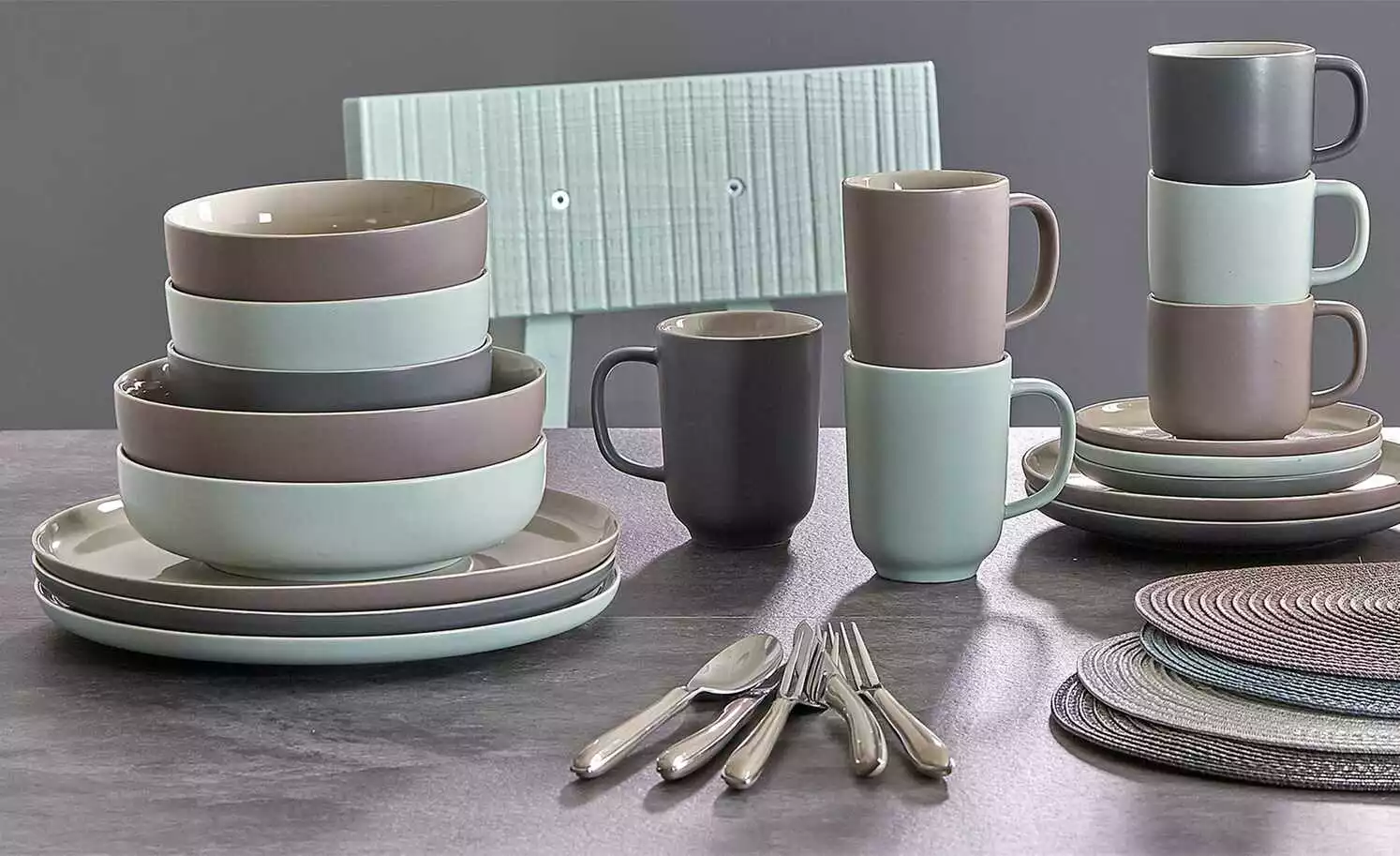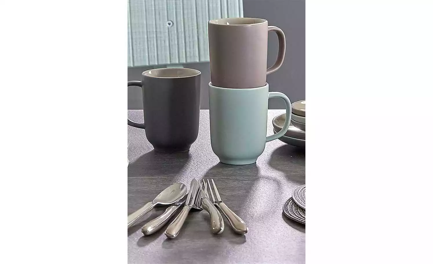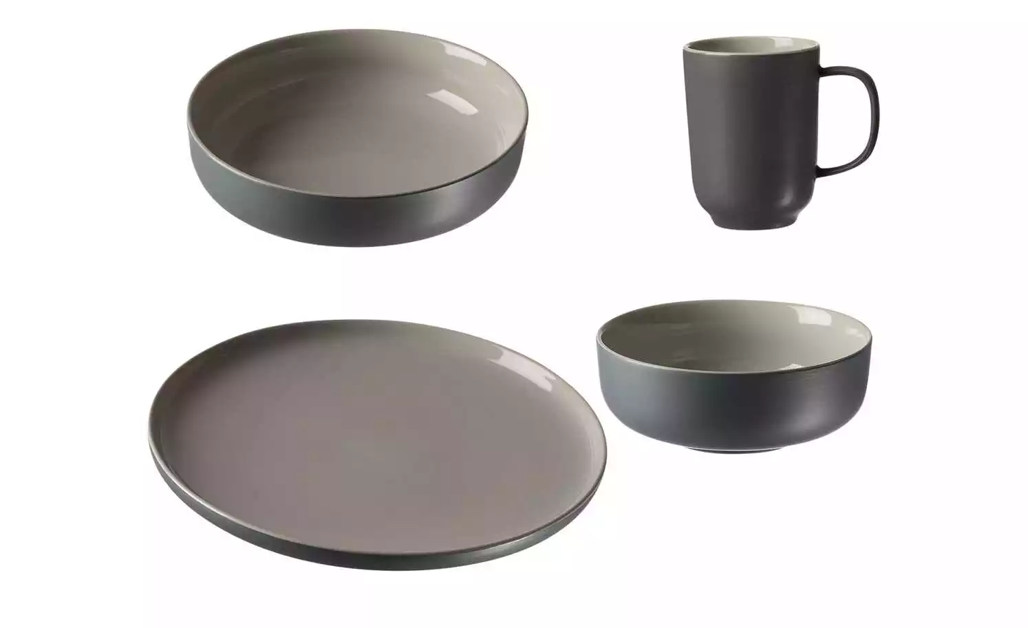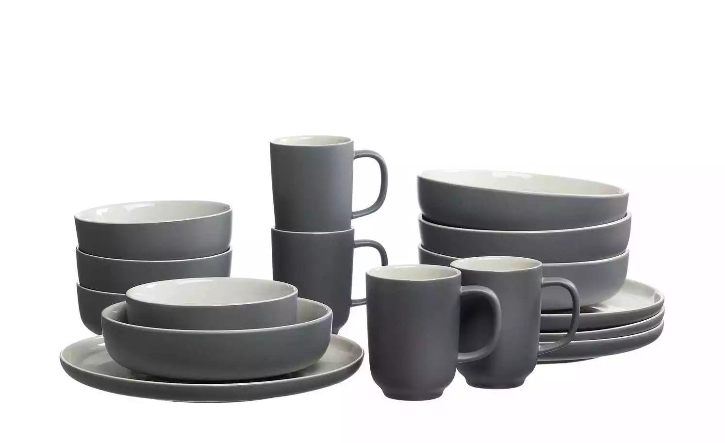 - Lieferumfang / mitgeliefertes Zubehör: 4 Kaffeebecher (320 ml), 4 Müslischalen (14 cm Ø, 5 cm hoch), 4 Schalen (21 cm Ø, 5 cm hoch), 4 Teller Flach (26 cm Ø)